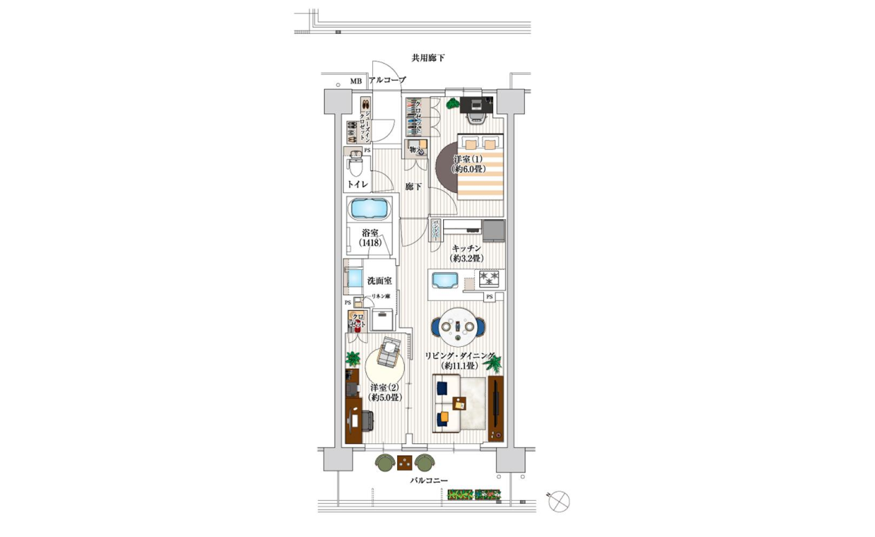 人気のナチュラルテイスト家具を取り入れたコーディネート。温かみのある空間で快適な新生活を始められます。